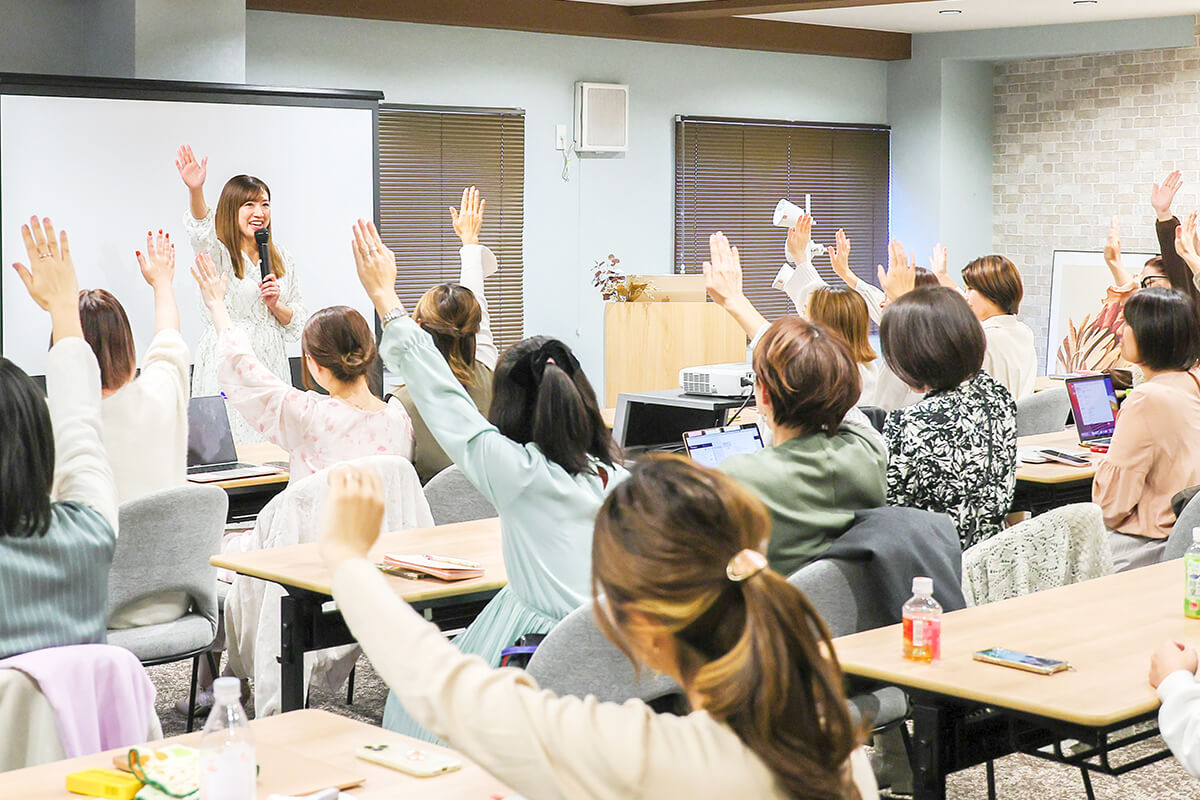 その後、妊娠を期にセミナーが自宅完結でできないかを考え、『在宅セミナー講師という働き方』を考案。現在は、「ママの働き方、女性の生き方を変える!」というミッションのもと、『ママのミカタ』学校の講師を務める。